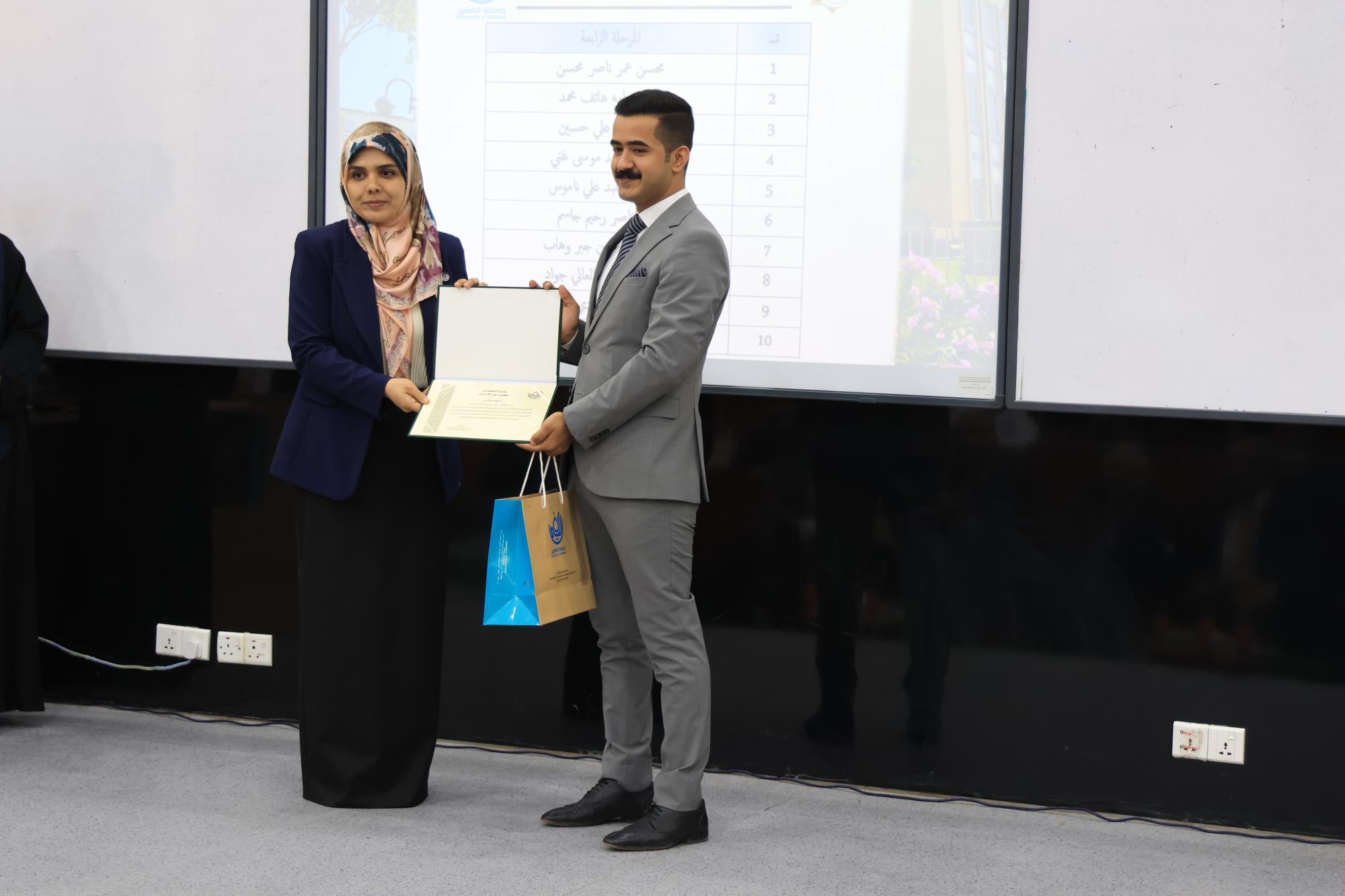 وتابع الغانم أنّ "الحفل أُقيم بحضور أولياء أمور الطلبة، في إشارة إلى المجتمع باهتمام جامعة الكفيل بالتفوق الدراسي للطالب الجامعي ومنحه الدعم الكامل".
