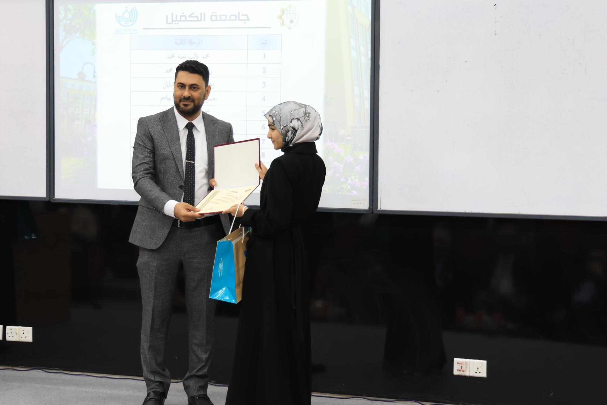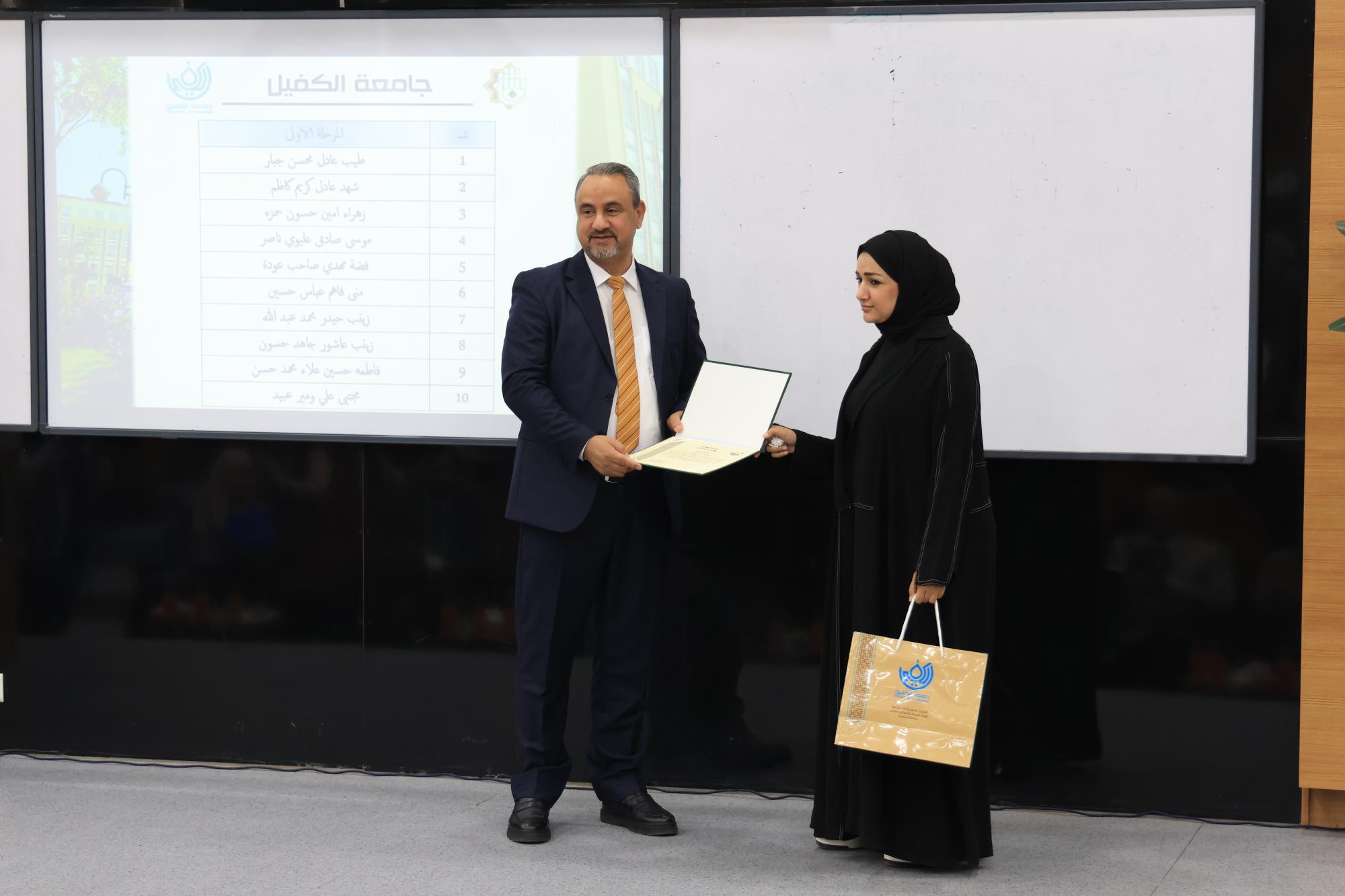 نظمت جامعة الكفيل حفلًا لتكريم طلبتها من كلية طب الأسنان، الحاصلين على المراكز الثلاث الأولى عن الموسم الدراسي الماضي (2022_2023).