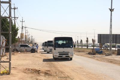 Die Transportbusse irakischer Universitätsstudentinnen aus den südlichen Provinzen, die an der zentralen Abschlussfeier der Abteilung der Al-Kafeel-Frauenschulen am heiligen Abbassitischen Schrein teilnehmen, haben begonnen, im Gouvernement Karbalaa einzutreffen.