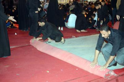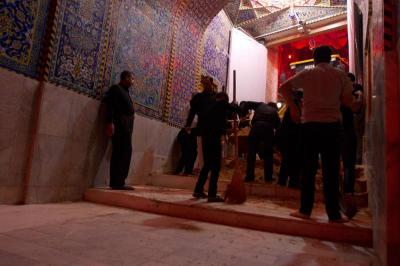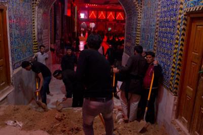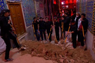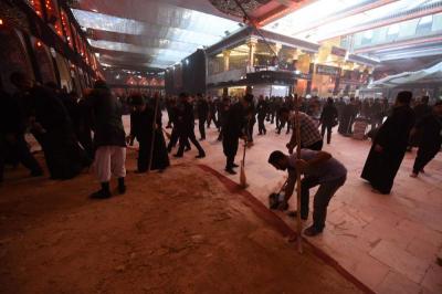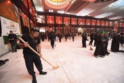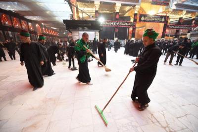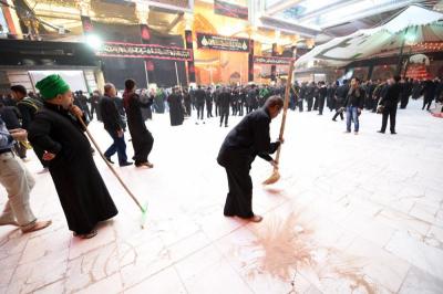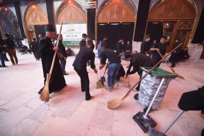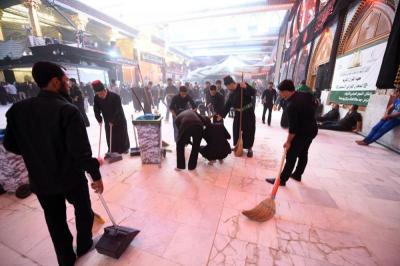 Mukaddes Türbe’nin Bakımı Bölümü, Hizmet İşleri Bölümü ve Seyyid Hizmetkârları Bölümü ile diğer ilgili bölümler; Aşûra ziyaretinin sona ermesinin hemen ardından Mukaddes Türbe’nin pâk avlusuna (Sahn-ı Şerîf) iki gün önce yerleştirilen özel mefruşatı kaldırdı. Ardından Sahn-ı Şerîf ve Harem-i Mutahhar (Türbe’nin surlar içerisinde kalan binası ve kalbi mesabesindeki yer) temizlenip yıkandı. Ardından Matem alaylarının ve mateme katılanların gidişini belirleyen engeller ve barikatlar kaldırıldı. Matem alaylarının girişini kolaylaştırmak için Mukaddes Türbe’nin kapı girişlerine yerleştirilen kumlar da aynı şekilde kaldırıldı ve ana kontrol noktaları da oldukları yere geri götürüldü. Çalışmalar bunlara ek olarak; Sahn-ı Şerîf’in surlarının dışında kalan yerlerdeki çöplerin temizlenmesini ve Mukaddes Ziyaretgâh’a götüren yolların düzenlenmesini de kapsadı.