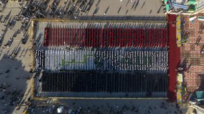 Die Aktivitäten des zweiten Tages begannen im Hof des Qiblah-Tors des Schreins von Abi al-Fadl Al-Abbass (Friede mit ihm) unter dem Motto: (Vom Licht Fatimas - Friede sei mit ihr - erhellen wir die Welt), mit der Teilnahme von mehr als 2.000 Studentinnen von verschiedenen Universitäten des Landes und Studentinnen aus arabischen und islamischen Ländern. .