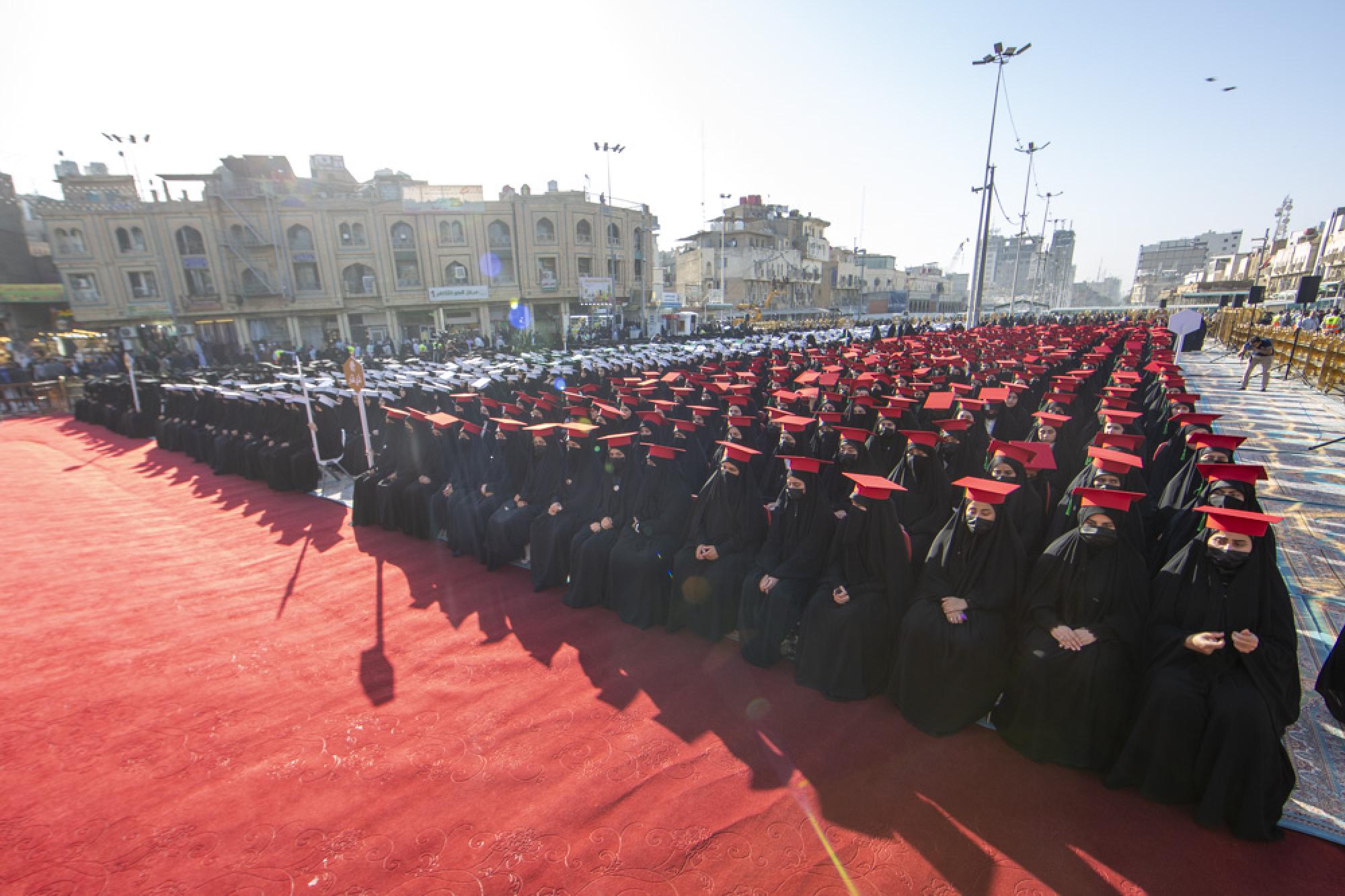 La cérémonie centrale de remise des diplômes aux étudiantes irakiennes (la sixième promotion des filles d'Al-Kafeel) est l'un des plus grands festivals organisés par le sanctuaire saint Al Abbas (p), à travers lequel il cherche à fournir une motivation morale aux diplômées et à faire leurs débuts à la vie pratique depuis le sanctuaire d'Abi Al-Fadl Al-Abbas (que la paix soit sur lui).
