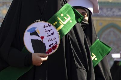Elle a ajouté : "Je représente aujourd'hui mon pays avec un groupe de femmes diplômées, et j'ai l'honneur de participer à cette grande cérémonie de célébration organisée par le sanctuaire saint Al Abbas (paix sur lui) dans l'État frère d'Irak".