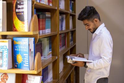 Il a déclaré que "la bibliothèque ne se limite pas au domaine médical, car elle fournit des ressources en sciences générales et diverses spécialisations humaines, y compris celles liées aux départements de maternelle, de langue arabe, de langue anglaise et de vaisseaux d'information pédagogique".