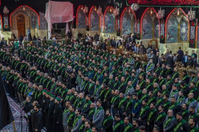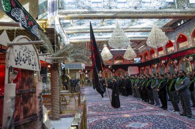 Der Schrein von Meister Aba al-Fadl al-Abbas (Friede sei mit ihm) war Zeuge der Aufführung der Diener des heiligen Schreins von Al-Abbas (p), der Zeremonien der Anbetungspraxis, zum Gedenken an den Jahrestag des Martyriums von Lady az-Zahra (Friede sei mit ihr) nach der zweiten Erzählung.