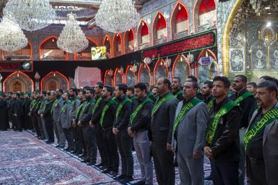Einer der Mitarbeiter der Abteilung für Öffentlichkeitsarbeit am heiligen Schrein, Sayed Ali al Mamitha, sagte, dass "die Übungszeremonien, die am Montag und Donnerstag jeder Woche stattfinden, mit dem Verlesen des Ziyarat von Aba al-Fadl (Friede sei mit ihm) durch die Diener des heiligen Schreins begannen und sie sich vor dem Heiligtum aufstellten, gefolgt vom Singen der "Melodie des Stolzes"".