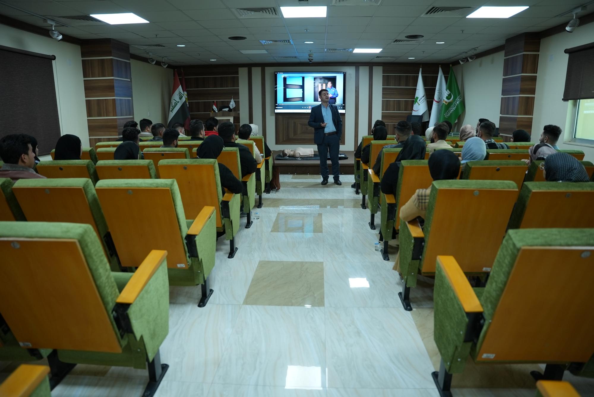 Le Dr Sanaa Abdel-Jabbar, maître de conférences au département de pharmacie de l'université Al-Safwa, a déclaré : « Nous avons organisé une visite sur le terrain à l'hôpital spécialisé Al-Kafeel, pour donner une conférence scientifique sur la réanimation cardio-pulmonaire et son importance, et pour informer notre équipe étudiants sur ses départements de médecine.