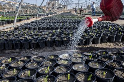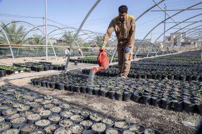 وقال السيد تنوير صادق سعيد أحد ملاكات القسم إنّ " القسم أنشأ مشتلاً في واحة رقم (32)، تُزرع فيه نباتات الزينة والأزهار والأشجار التي تتلاءم مع الظروف الجوية، وتأتي هذه الخطوة ضمن خطة المشروع لتحقيق الاكتفاء الذاتي كمرحلة أولى".