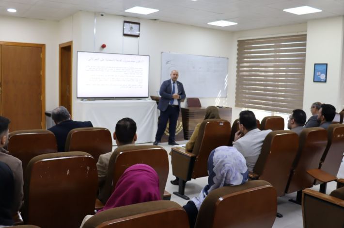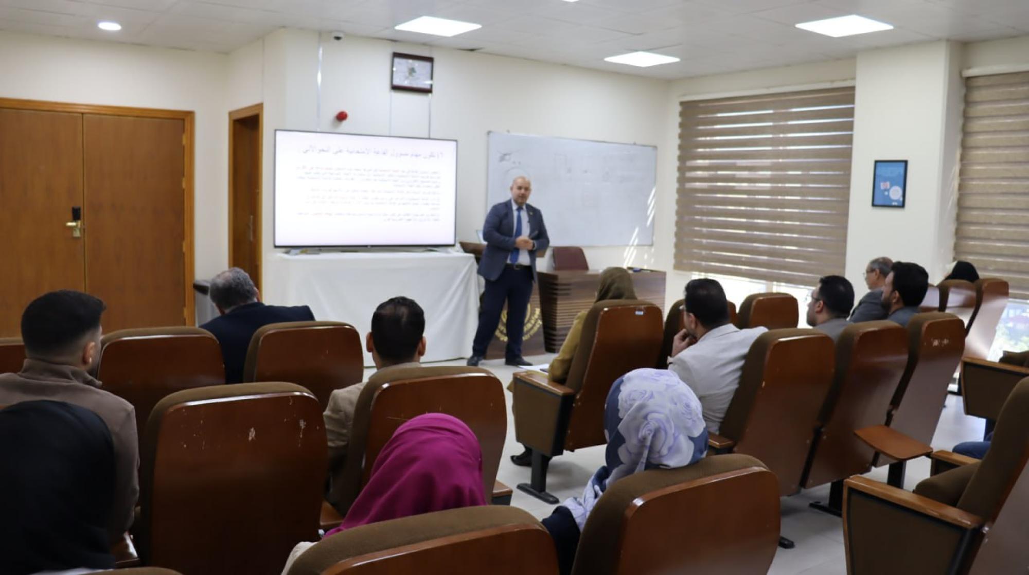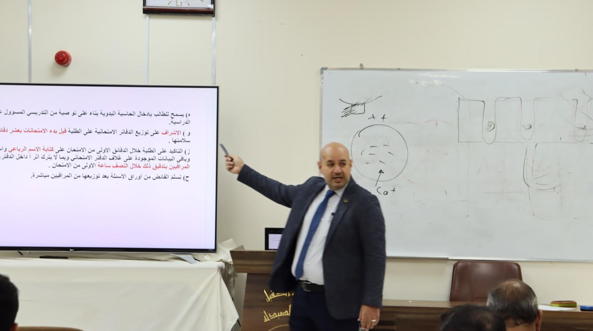 وألقى رئيس فرع العلوم المختبرية السريرية ونائب رئيس اللجنة الامتحانية في كلية الصيدلة الأستاذ المساعد الدكتور حسنين شاكر محمود، محاضرة حول التعريف والتذكير بالتعليمات الامتحانية، تزامنًا مع قرب امتحانات نهاية الفصل الدراسي الأول.