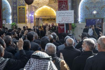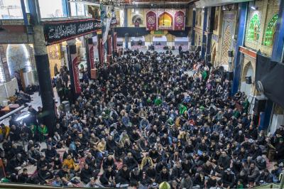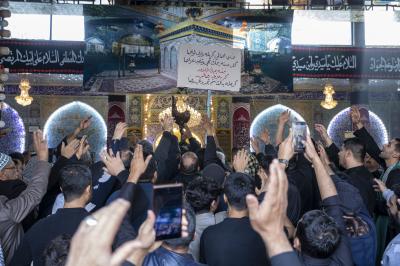 He added,"the procession of the people of Karbala, upon arrival at the holy shrine, held a condolence Council, in which many Husseini poems and lamentations were delivered, which expressed the painful occasion, with the participation of a large gathering of mourners visitors."