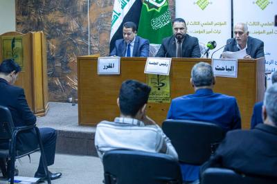 قدّم الباحث الدكتور عامر شامل كاظم الخفاجي من كلية الآداب/ قسم اللغة الانجليزية، بحثًا بعنوان "تراث الإمام علي بن أبي طالب (عليه السلام) في عيون المفكرين الغربيين".