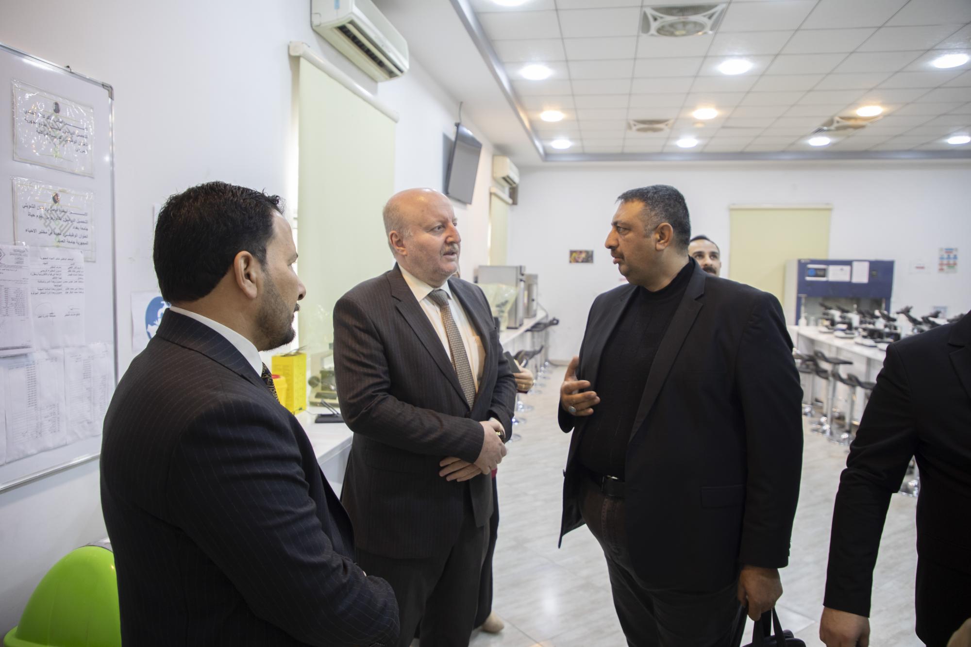وقال مساعد رئيس الجامعة للشؤون العلمية الأستاذ الدكتور ميثم حميد القنبر إن "وفد تقييم مستوى السلامة المهنية ودرء المخاطر، أجرى جولةً لمتابعة معايير السلامة المهنية المتّبعة في المختبرات الكيمياوية والبيولوجية الموجودة في جامعة العميد".