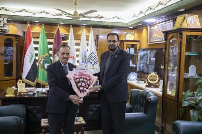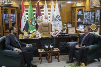 الوفد قدّم التهاني والتبريكات لرئيس الجامعة الدكتور جودت نوري الجشعمي بمناسبة تسنمه منصبه، وبحث تقوية أواصر التعاون المشترك مع جميع مؤسّسات المجتمع وشرائحه.