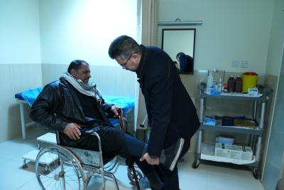 The hospital received a number of wounded who were sent by the Popular Mobilization authority in cooperation with the Ministry of oil, to receive consultation and inspection, to see their health conditions and give them appropriate treatment.
