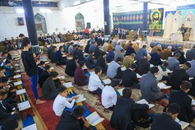 وتخلّل المحفل إجراء فقرة اختبار الحفظ، لعددٍ من المشاركين، بالإضافة إلى أبيات الرثاء والعزاء بمشاركة القارئ ثامر الفرطوسي.
