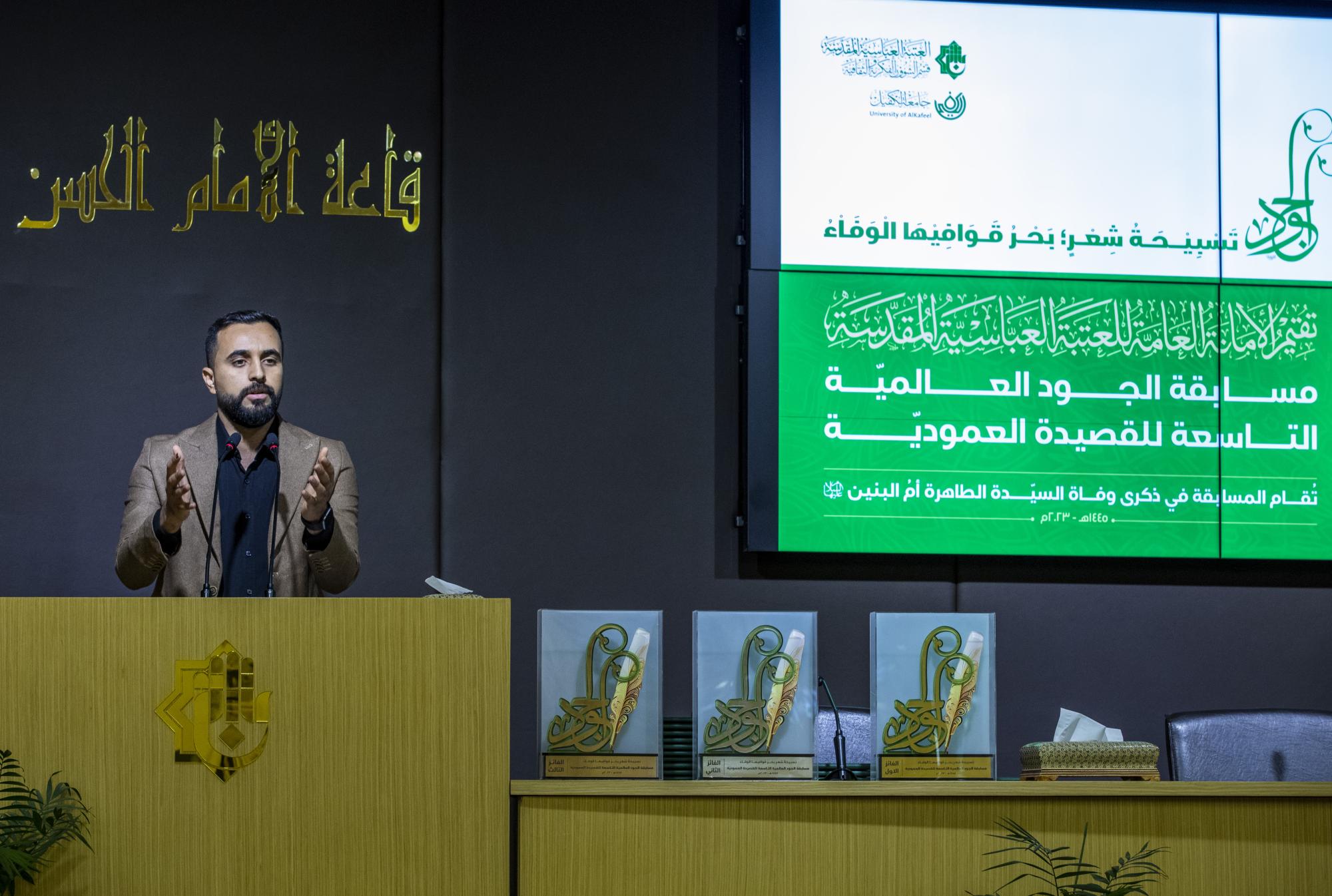 أعقب ذلك تكريم الشعراء أصحاب القصائد الـ (10) الفائزة في المسابقة من أصل (78) قصيدة لشعراء شاركوا من دول عربية وإسلامية عدّة، منها (مصر، سوريا، لبنان، البحرين، السعودية، الجزائر، الأردن، إيران، فضلًا عن العراق).