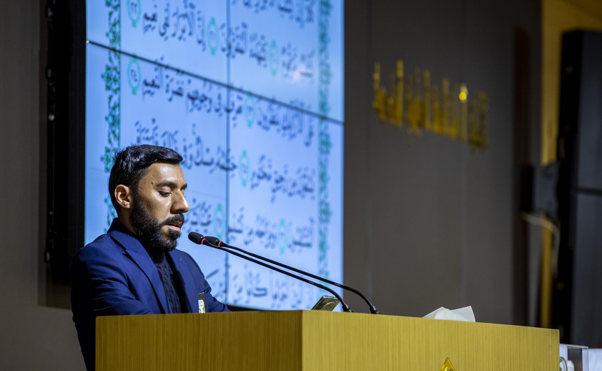 واستُهِلت بتلاوة عطرة لآيات من الذكر الحكيم بصوت قارئ العتبة العباسية السيد علي الساعدي، تلتها كلمة الأمانة العامة للعتبة العباسية المقدسة ألقاها الدكتور مشتاق العلي، أكد فيها على أنّ الشعر يمثّل وثيقة معرفية وثقافية، لا مصفوفات لفظية،لقراءة الكلمة.