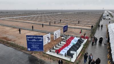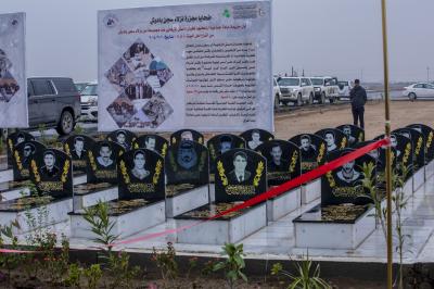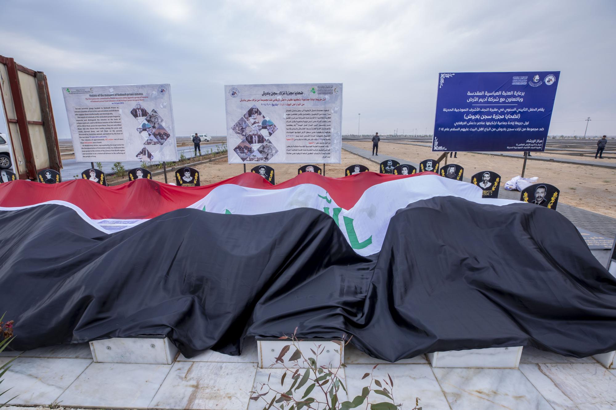 وقال الشمري "أتقدّم بجزيل الشكر والعرفان للعتبة العباسية المقدّسة، متمثّلةً بالمركز العراقي لتوثيق جرائم التطرّف ومديره الدكتور عباس القريشي، لما بذلوه من جهود تستحقّ الشكر والثناء بدءاً من تبرّعهم بنعوش التشييع، مروراً بتغسيل وتكفين الشهداء والتبرّع بتخصيص هذه المقبرة، ودفن شهدائنا وبناء قبورهم".
