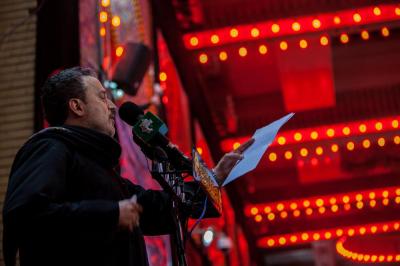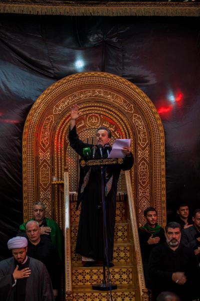 Ardından minbere büyük meddah Hacı Basim Kerbelâ çıktı ve Hz. İmam Hasan’ın (Allah'ın selâmı üzerine olsun) Emevi çetelerinin elinden yaşadığı zulümler ile şu anda O’nun (Allah'ın selâmı üzerine olsun) aşıklarının tekfirci çetelerin elinden yaşadığı canilikleri irdeleyen mersiyeler okudu.