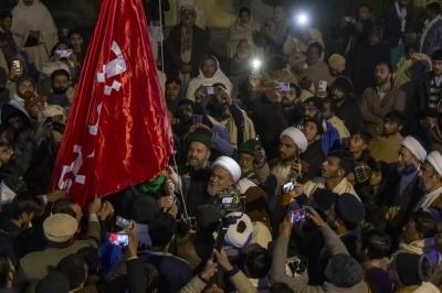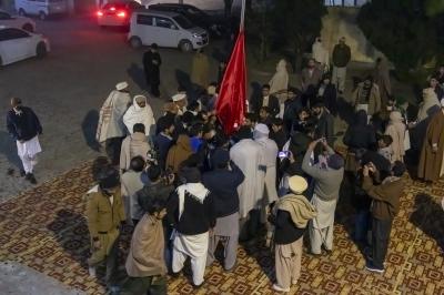 رفع وفد العتبة العباسية المقدسة في دولة باكستان، راية أبي الفضل العباس(عليه السلام) وسط جامعة مظهر الإيمان.