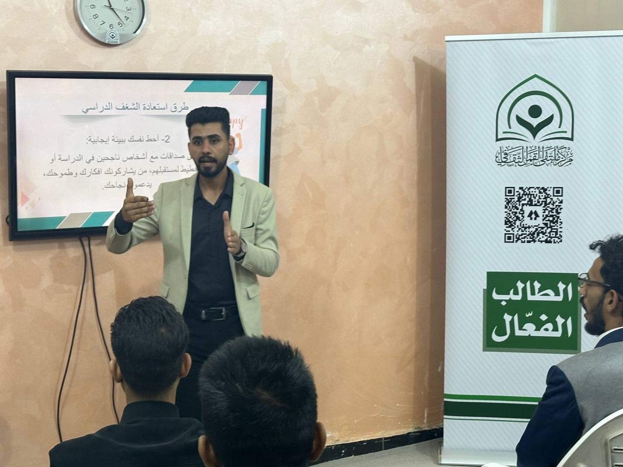 وقال مدير مركز ملتقى القمر الثقافي التابع للقسم الشيخ حارث الداحي إنّ "برنامج الطالب الفعال انطلق منذ أربعة أسابيع مستهدفًا طلبة المدارس الإعدادية في مدينة الناصرية بمحافظة ذي قار، وتضمّن عقد مجموعة من الورش الثقافية والمحاضرات الفكريّة، فضلاً عن النشاطات الثقافية التي تحقق بناء المهارات وزيادة الخزين المعرفي لدى الطلبة".