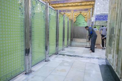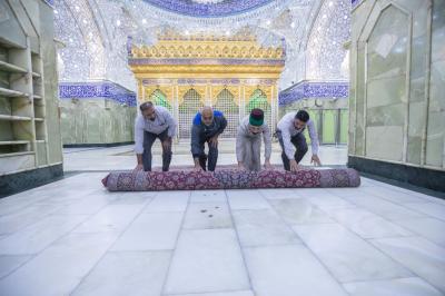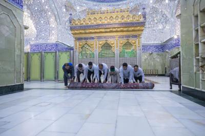 وی گفت: بعد از تکمیل اقدامات شستشو، حرم مطهر و فضای مشرف به صحن را با بهترین انواع فرشهای جدید مفروش و بهترین عطرهای طبیعی و مرغوبترین انواع عود عربی متناسب با فضای معنوی این مکان را استفاده کردیم.