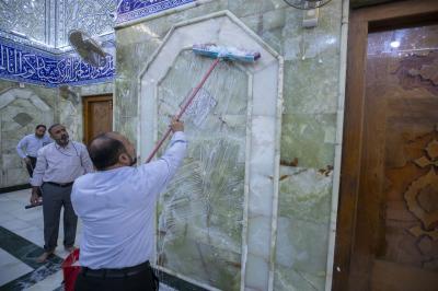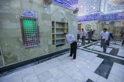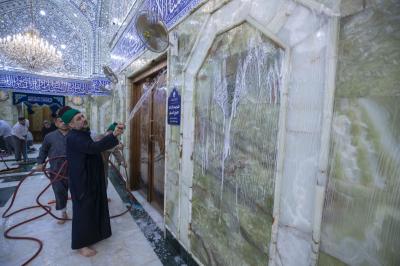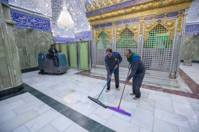الطیف اظهار داشت: اوقاتی که اقدامات شستوشو و مفروش نمودن انجام میشود، طبق برنامه زمانی از پیش تهیه شده و به صورت دورهای است که معمولاً در نیمه شب همزمان با کاهش ازدحام زائران انجام میشود.