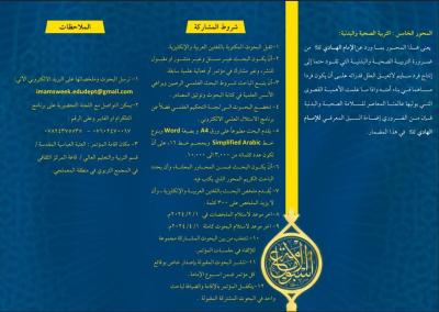 يُعنى هذا المحور بما ورد عن الإمام الهادي(عليه السلام) من ضرورة التربية الصحّية والبدنية التي تقود حتماً إلى إنتاج فردٍ سليم، لا تعيق العلل قدراته على أن يكون فرداً مساهماً في بناء أمّته، وإذا ما عُلِمت الأهمية القصوى التي يوليها عالمنا المعاصر للسلامة الصحّية والبدنية، فإنّ من الضروري إضاءة السبق المعرفي للإمام الهادي(عليه السلام) في هذا المضمار.