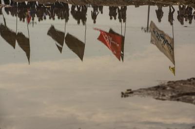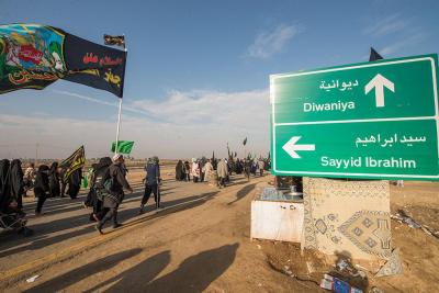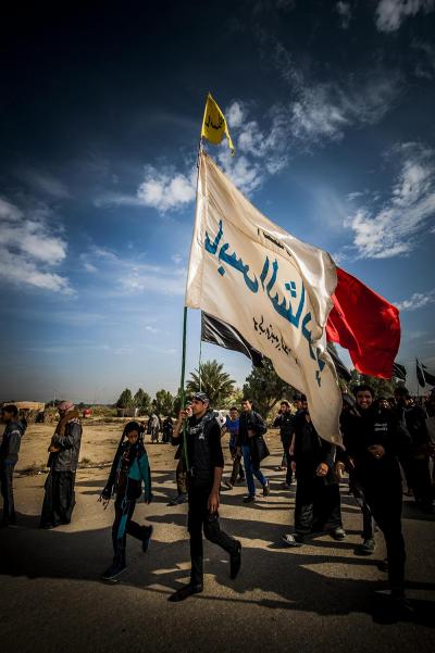 The cameras of the photographers of the Al-Kafeel Global Network have taken a number of shots of some visitors, carrying the banners of the timeless At-Taf battle on the road linking the province of Al-Muthanna to the province of Diwanyah, heading towards the holy city of Karbala, where are the shrines of the master of martyrs and his brother Aba Al-Fadl (peace be upon both of them).