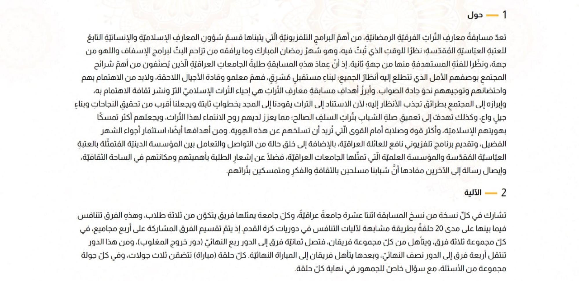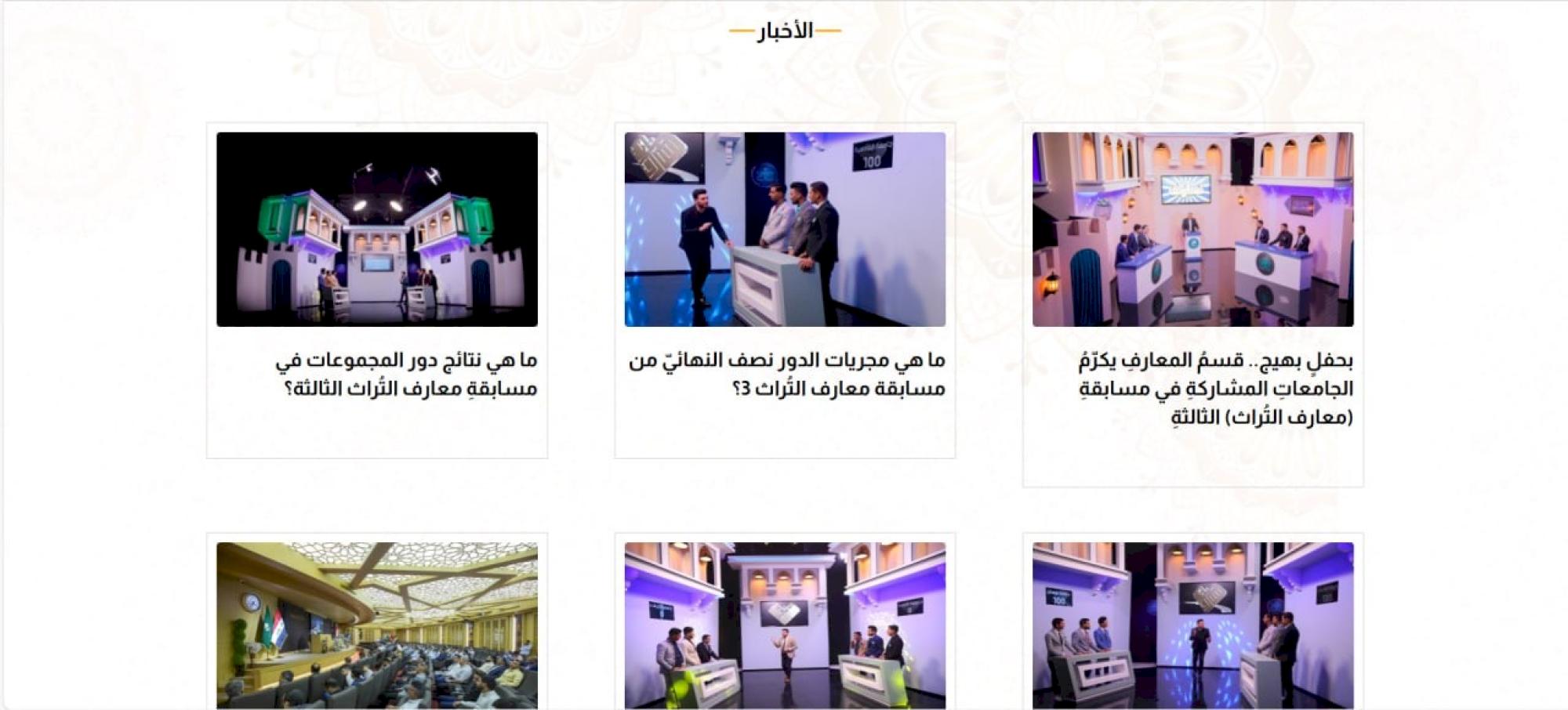 أطلق قسم شؤون المعارف الإسلامية والإنسانية في العتبة العباسية المقدسة، موقعا إلكترونيا جديدا خاصا بمسابقة معارف التراث الفرقية الرمضانية التلفزيونية لطلبة الجامعات العراقية.