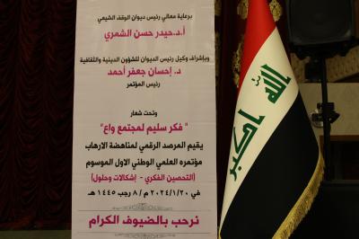 The conference was held under the slogan (sound thinking for a conscious society) under the auspices of the chairman of the Shiite endowment Bureau, Dr. Haydar Hassan al-Shammari, and under the supervision of his undersecretary for religious and Cultural Affairs, Dr. Ihsan Ja'far Ahmad.
