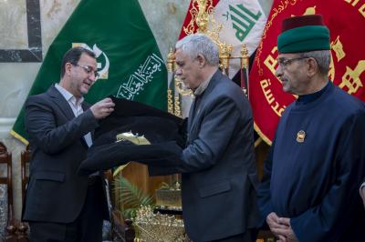 روضہ مبارک کاظمین کے وفد نے حضرت امام موسی کاظم علیہ السلام کے یوم شہادت کی مناسبت سے روضہ مبارک حضرت عباس علیہ السلام کو پرچم حزن پیش کیا ہے۔
