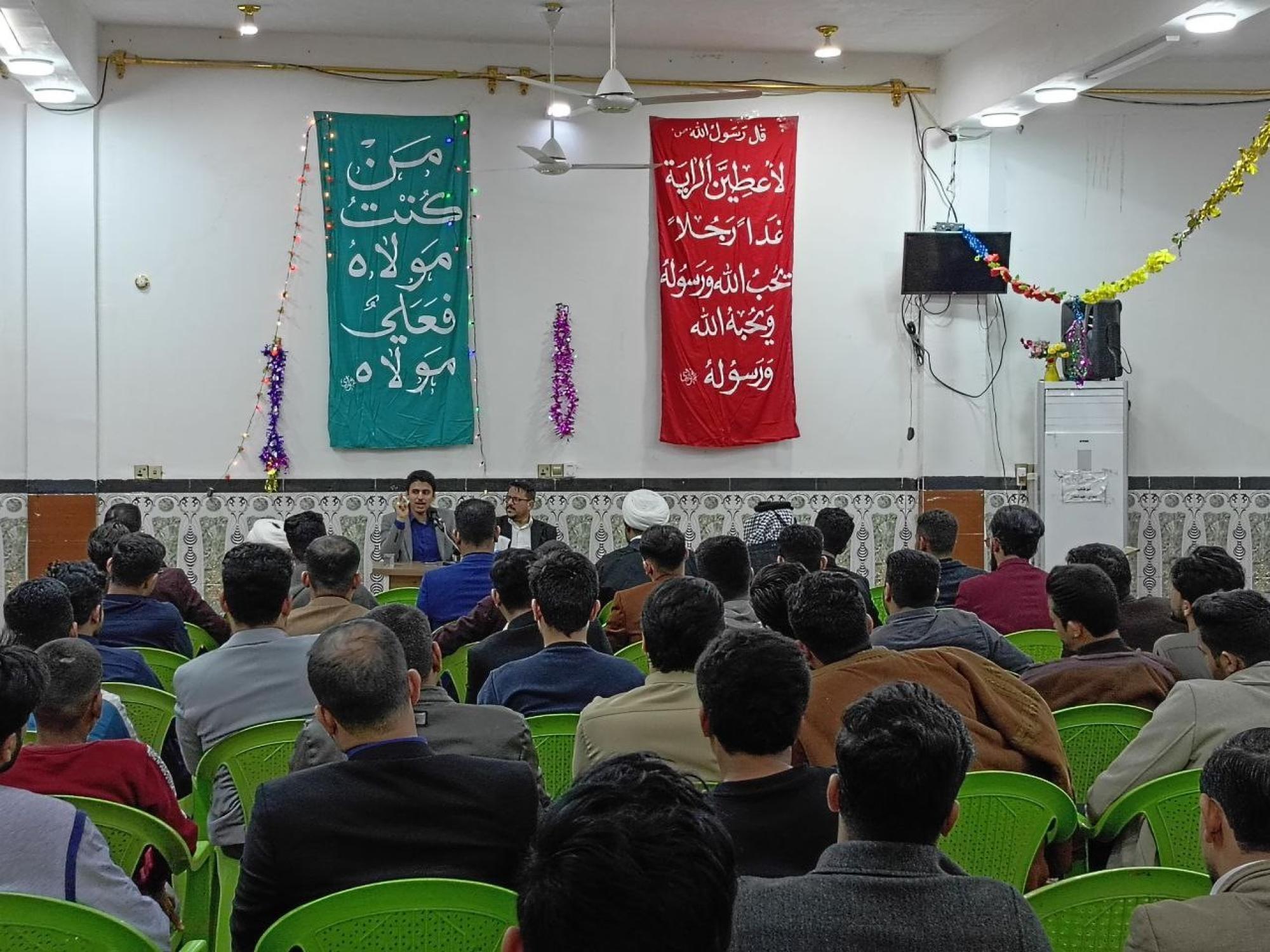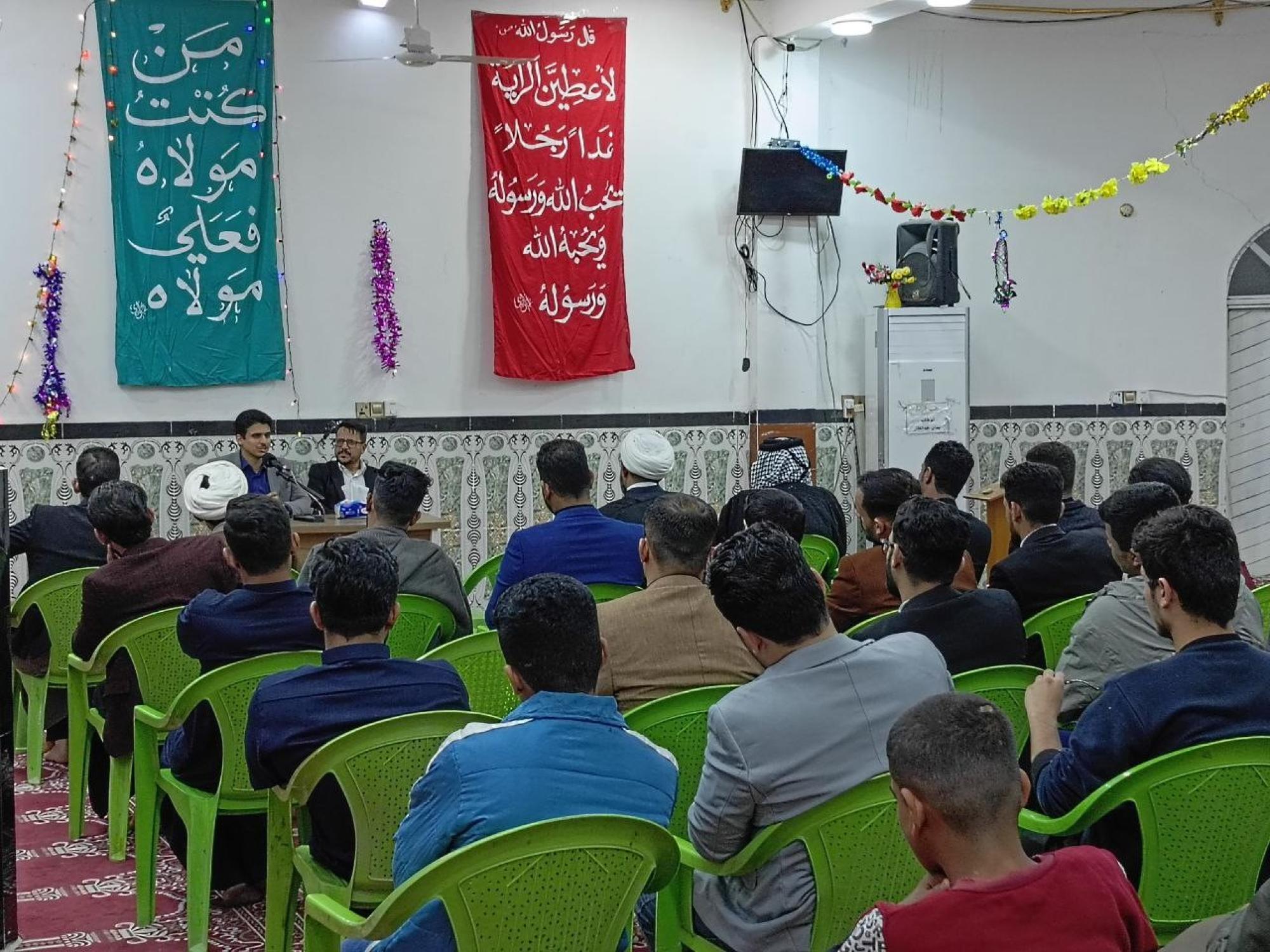الندوة أقامها مركز ملتقى القمر الثقافي - فرع ذي قار التابع للقسم، وحاضر فيها الشيخ علي السعيدي والأستاذ محمد حسن المولى.