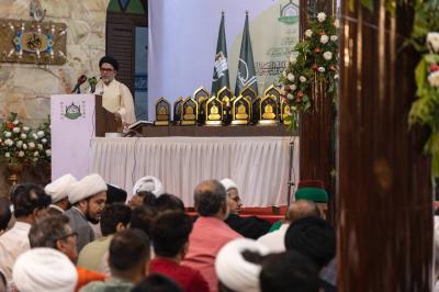 Die Abschlussveranstaltung begann mit der Lesung von Versen aus dem Heiligen Koran durch den Vorleser des Heiligen Alawitischen Schreins, Sayed Hani al-Mousawi, gefolgt von einer Ansprache an die Heiligen Schreine und einer weiteren Ansprache des Vertreters der obersten religiösen Autorität in Indien, Sayed Ahmed al-Abedi.