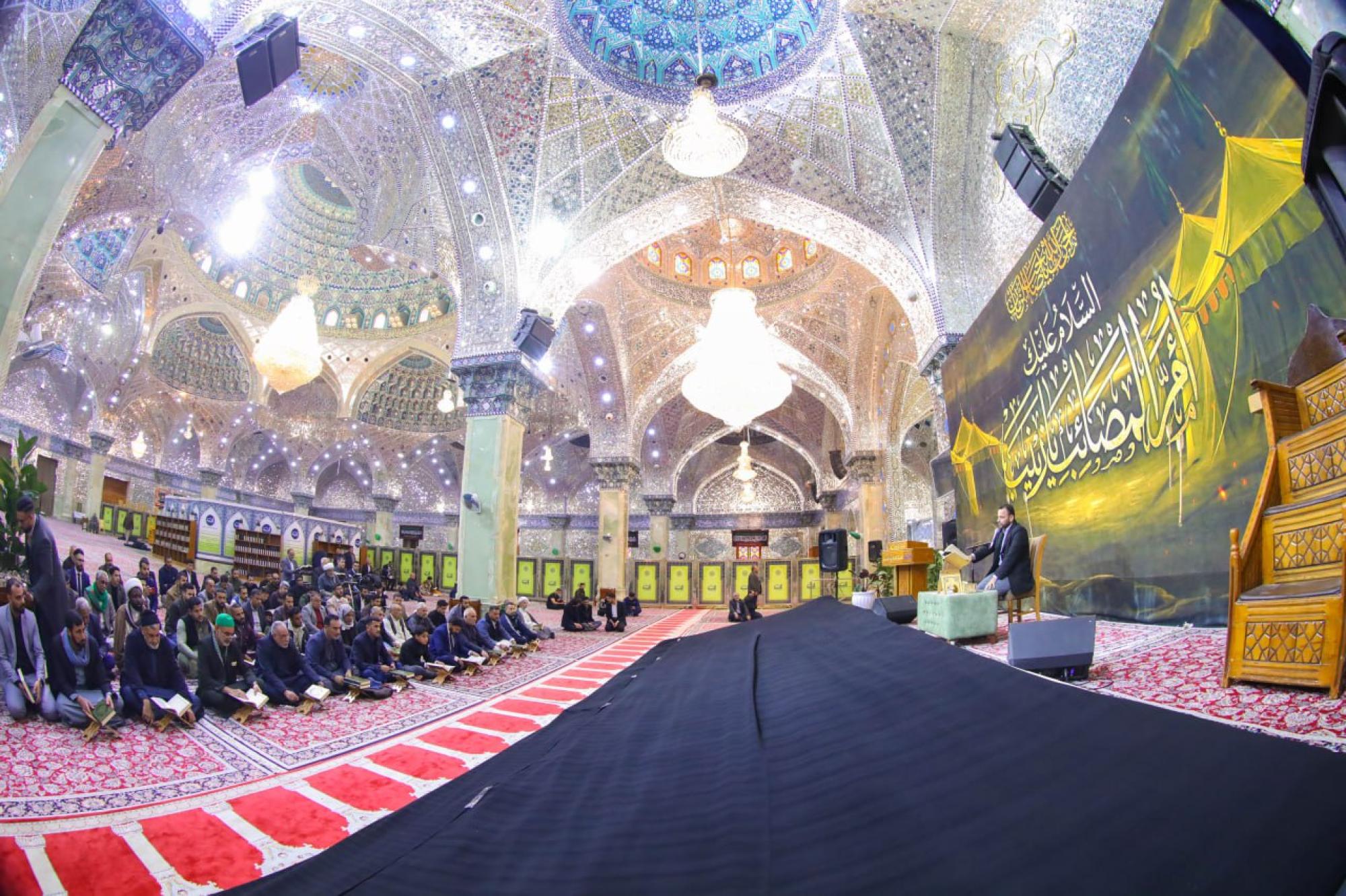 وافتُتح المحفل بتلاوة للقارئ الدكتور علي حمد الگلگاوي، تلتها كلمة للعتبة العسكرية ألقاها الشيخ عودة العكليلي، رحب فيها بالطلبة، وبمشاريع العتبة العباسية القرآنية التي أسهمت بصورة كبيرة في نشر الثقافة القرآنية في العراق العزيز، أعقبتها تلاوة للطالب محمد الحسيني، كما استُذكر مصاب السيدة زينب الحوراء (عليها السلام) وفضائلها في ثورة عاشوراء.