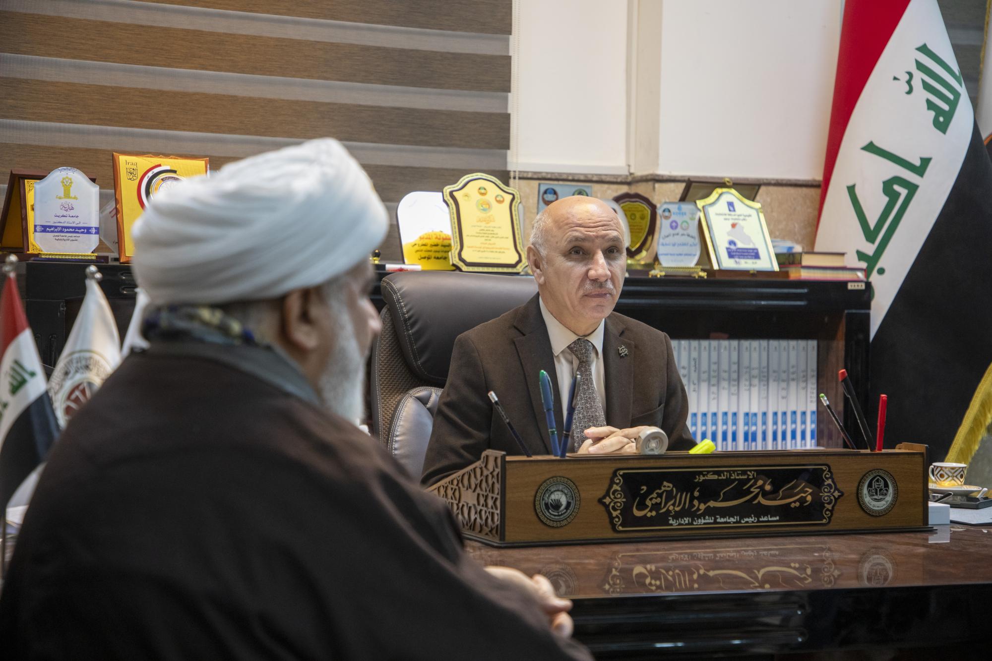 وقال مساعد رئيس الجامعة للشؤون الإدارية أ.د. وحيد الابراهيمي، "تشرّفنا اليوم بلقاء وفد العتبة العبّاسية المقدسة المتمثّل بمعاون رئيس قسم الشؤون الدينية الشيخ عادل الوكيل، ومسؤول شعبة العلاقات الجامعية السيد ماهر خالد، لبحث سبل التعاون حول إقامة مهرجان (نبيّ الرحمة صلّى الله عليه وآله) بنسخته الثانية".