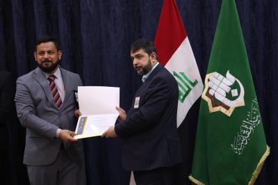 واستُهِلَّ الحفل بتلاوةٍ مباركة من آيات الذكر الحكيم، أعقبتها قراءة سورة الفاتحة ترحّماً على أرواح شهداء العراق.