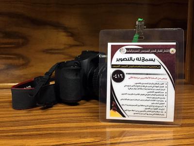 4- عند استلام (الباج) الخاص بالتصوير يُرجى تسليم الهوية الخاصة بالقناة أو الإذاعة أو المجلة أو الصحيفة أو الموقع الإليكتروني الذي يعمل فيه المصوّر أو المراسل حصراً.