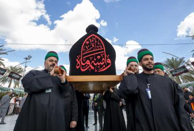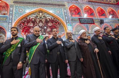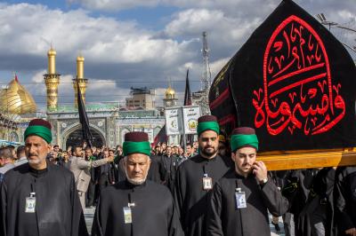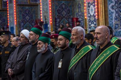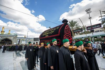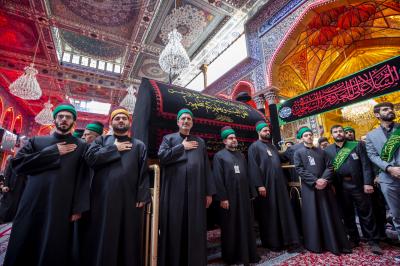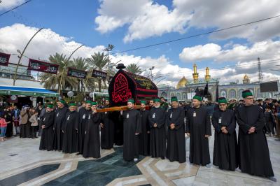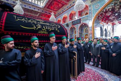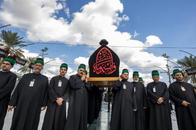 واختتم الموكب مسيره في الصحن الحسينيّ الشريف بإقامة مجلس عزاء، بمشاركة منتسبي العتبتين المقدّستين الحسينية والعباسية وجمعٍ من الزائرين، ألقيت فيه القصائد والمراثي التي تحاكي هذه الذكرى الأليمة على قلوب المسلمين والمؤمنين.
