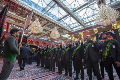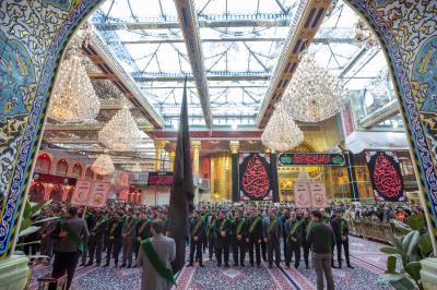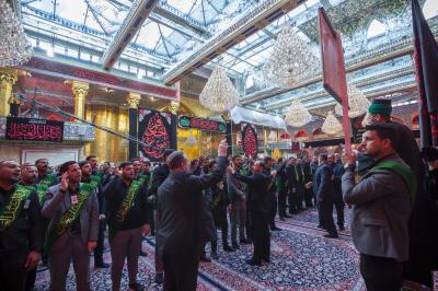 وانطلق الموكب من داخل الصحن الشريف لمرقد أبي الفضل العباس(عليه السلام)، بعد أن اصطفّ خدمته على شكل مجموعات، ثم توجّهوا نحو مرقد سيد الشهداء الإمام الحسين(عليه السلام)، مروراً بساحة ما بين الحرمين الشريفين، مردّدين الكلمات التي جسّدت مشاعر الحزن والألم، وبينت مدى وقع هذا المصاب على نفوس محبّي أهل البيت(عليهم السلام).