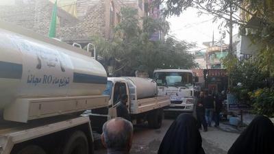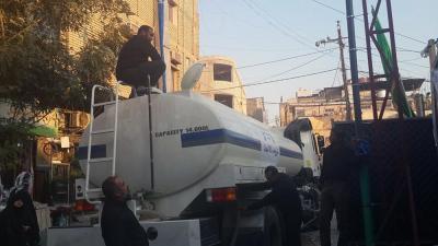 According to a pre-studied plan, the water unit at the department of services' affairs deployed its specialized vehicles to provide potable water to the services' processions inside and outside the city, and despite the huge crowds on the roads, this service works by two shifts per day, one in the morning and the second in the evening, to provide about 224.000 Litres of water that can be more at peak times.