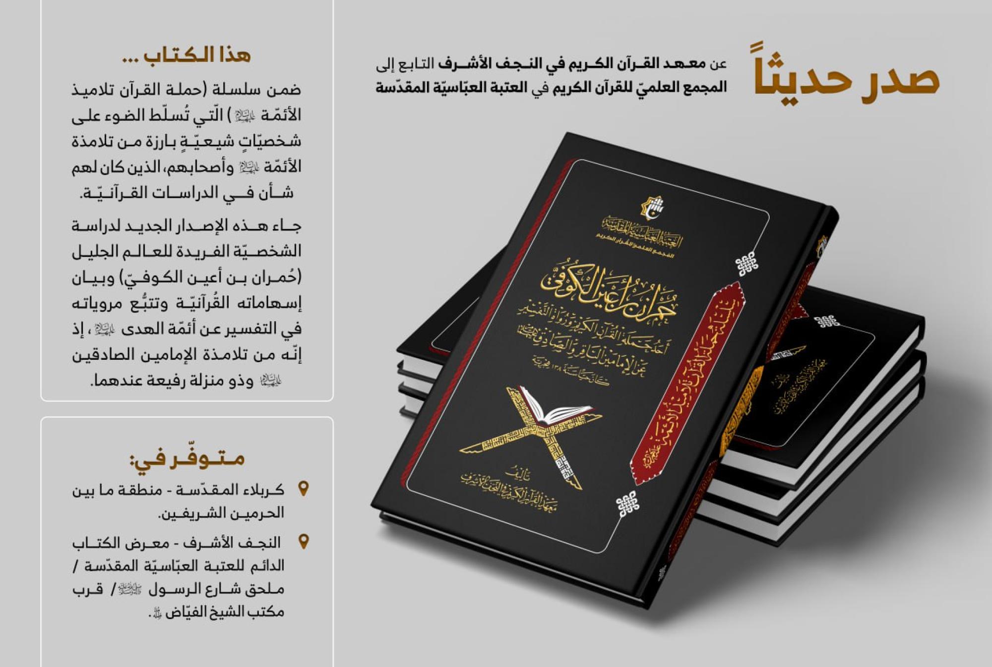 أصدر المجمَع العلمي للقرآن الكريم في العتبة العباسية المقدّسة، كتاب (حُمران بن أعين الكوفيّ).
