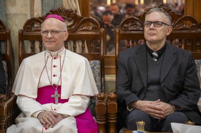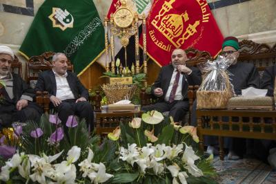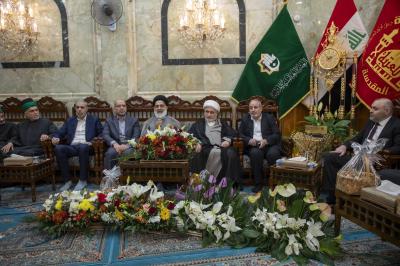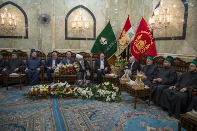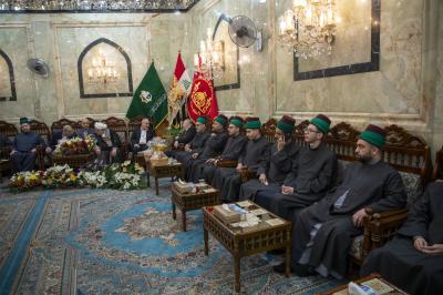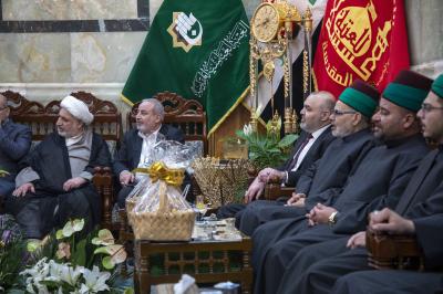 The delegation of the Imam al-Hussayn's (p) holy shrine presented congratulations to the servants of the Al-Abbas's(P) holy shrine, on the occasion of the birth anniversary of Aba al-Fadl al-Abbas (Peace be upon him).
