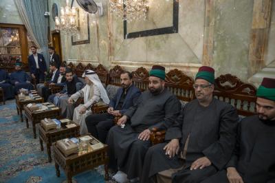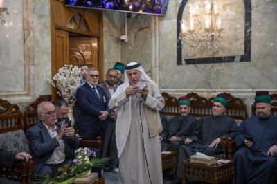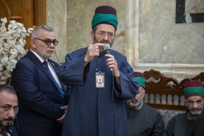 The delegation, presented by the deputy secretary general of the Imam al-Hussayn's (p) shrine; Dr. Alaa Dia-Uddin, started carrying wreaths and bouquets of roses, repeating the words expressing the great joy that flooded the hearts of believers, with the participation of a group of visitors.