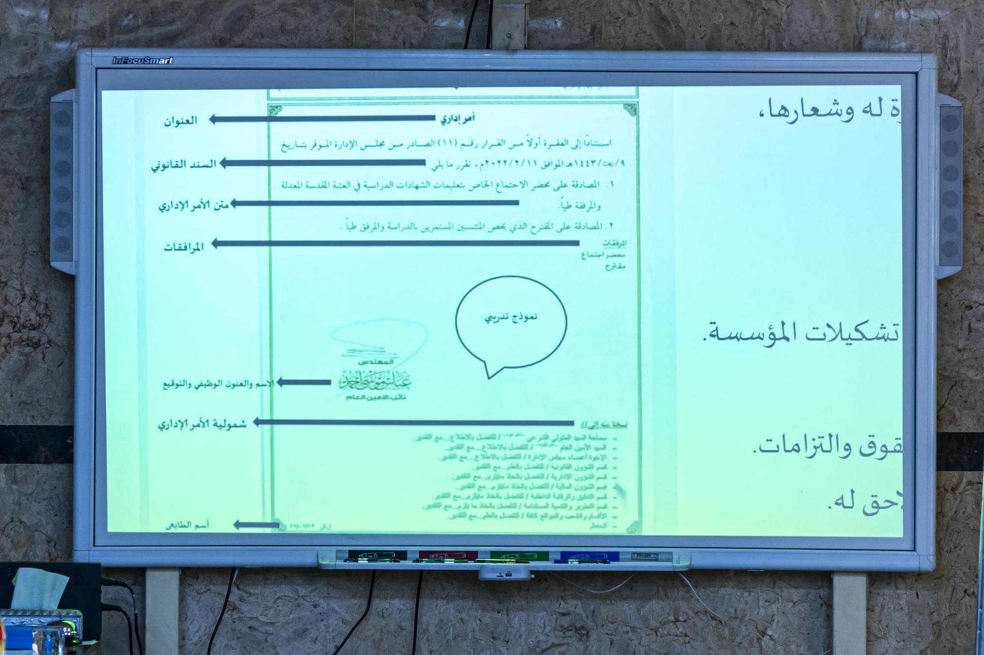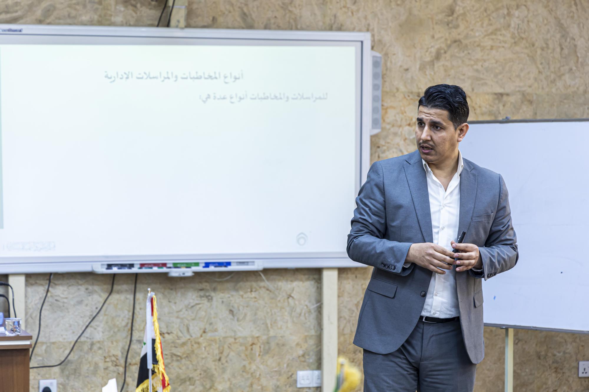 Le formateur du cours, M. Hussein Hamid Odeh, a déclaré : "Le Département de Développement a organisé un cours sur la correspondance administrative pour un groupe de membres du Sanctuaire. Le cours comprenait une introduction au concept et a permis aux participants de préparer la correspondance administrative".