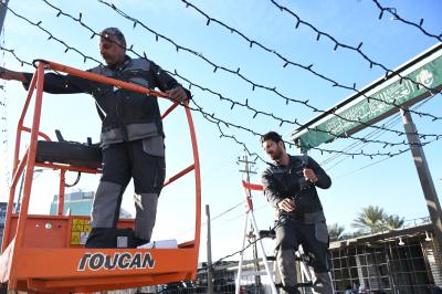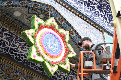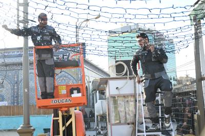 وأضاف أنّ "ملاكاتنا نشرت معالم الزينة والنشرات الضوئية في مواقع القسم ومحيطه، والشارع الرئيسي المؤدي إليه، والجسر المجاور للمقام الشريف، فضلًا عن نصب بوسترات جدارية خاصة بهذه المناسبة".
