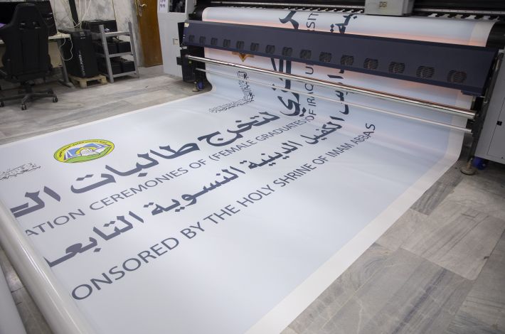 وسخّر المركز جهود ملاكاته وتمكّن من إنجاز المهام المناطة به في وقتٍ قياسيّ، وشملت الأعمال بوسترات المنصّات الرئيسية والإعلانات والفولدرات والدروع التقديرية، والوسوم الخاصّة بالحفل وأسماء الجامعات وغيرها من المستلزمات الطباعية، بأحجام وقياسات وتصاميم مختلفة وستثبت بحسب كلّ موقع.