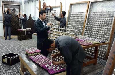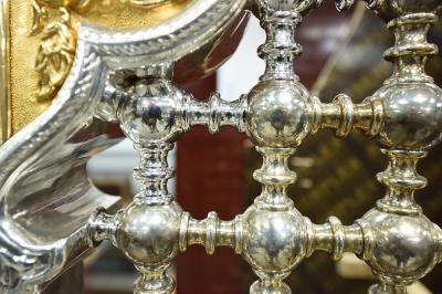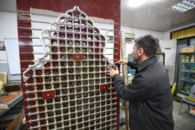 بقلوبٍ ملؤها الإخلاص والعزيمة والولاء تشهد الأعمال الخاصة بصناعة الشبّاك الجديد لأبي الفضل العباس(عليه السلام) تواصلاً وتقدّماً بشكلٍ متصاعد وحسب الخطة الموضوعة له، ومن تلكم الأعمال الجارية حالياً هي تركيب المشبّكات (القطع التي يتألّف منها الشبّاك) وهي مصنوعة من الفضة النقية (999) المخلوطة مع الذهب الخالص بنسبة (2%) والبالغ عددها (14مشبّكاً) تُحيط بالشبّاك من جميع جوانبه.
