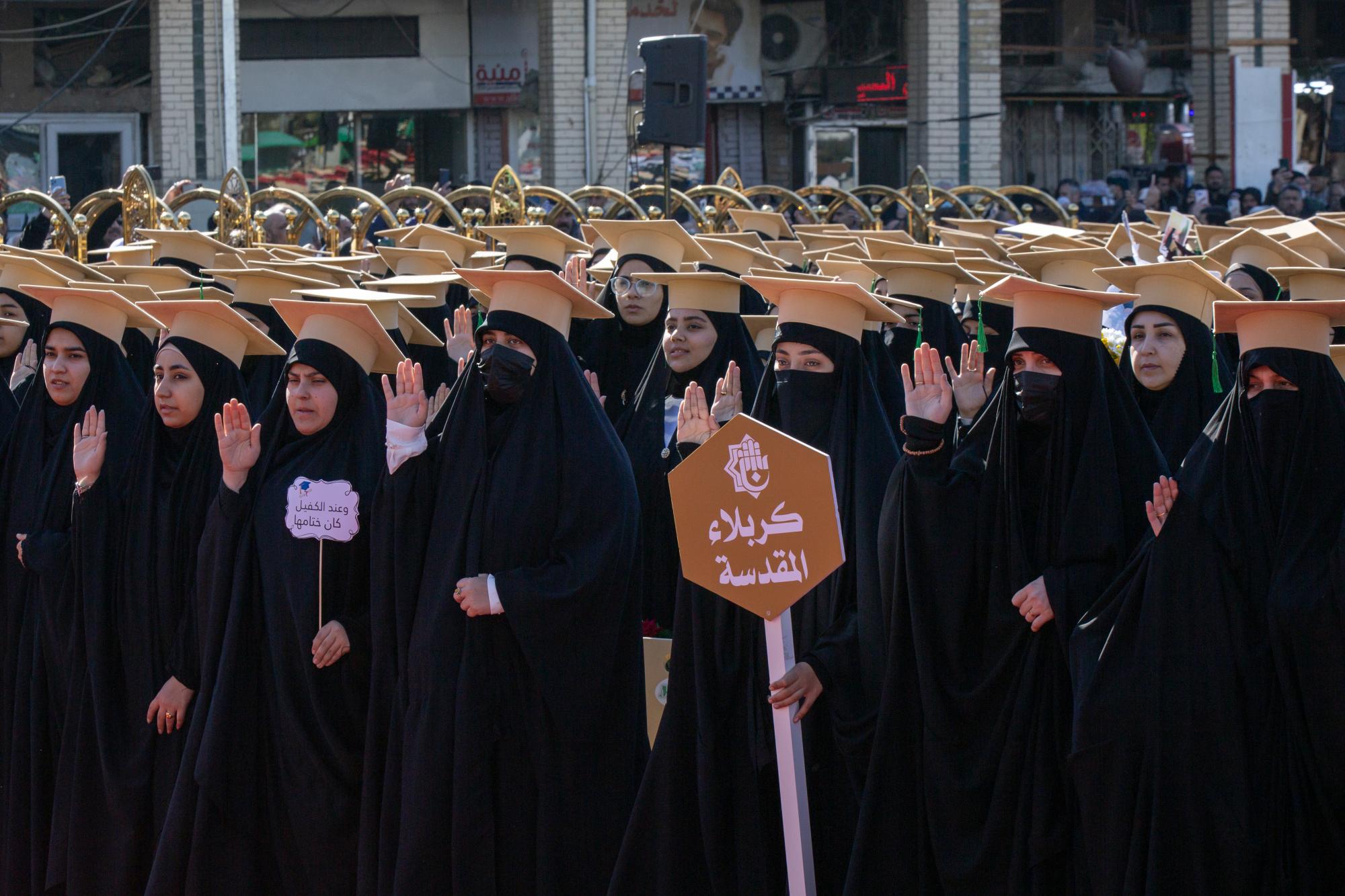 ورددت أكثر من (3000) طالبة من الجامعات العراقية المختلفة صباح اليوم، عهد التخرج بالولاء والأمانة لخدمة الوطن أمام مرقد أبي الفضل العباس (عليه السلام)، ألقاه عضو مجلس إدارة العتبة العباسية المقدسة الدكتور عباس رشيد الدده الموسوي وجاء فيه (يا غُرَّة الأوطان وبلسم الزمان، سوف نبقى إلى الغد، سوف نحيا إلى الغد، ستنجلي غمامة الأحزان، ويذهب الضباب، وتنفني الصعاب، وباعة الضمير والإنسان، ولن يكون في الغد شيء سوى العراق، عهدًا بأن نحميه من كل ما يؤذيه، عهدًا بأن نصون من كل ما يشين، على هدى نبينا المختار وآله الأبرار، نعاهد البلاد والعباد، بكل ما فيها من المقدسات، وبالرضاع من حليب الأمهات، وتعب الآباء أصحاب المنن، وأن نصون العرض والأرض، وأن نصون العهد في قفص الضلوع، وأن نضيء شمعة في وسط الجموع، ونرسم البسمة في شفاههم ونمسح الدموع، ونوقد الشموع، الغد الآتي لنا، حبذا أنت من منى، فتباركت موطنًا، وتعاليت موطنًا، رغم كل المحن، رغم أنف الزمن، سوف نرعى الذمم، سوف نعلو القمم، سوف نلقي القسم).