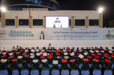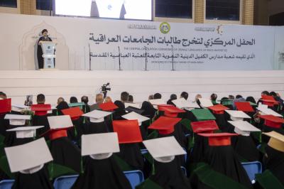 وأكد سماحته أن "العراق بلد علم وأخلاق وقيم، وأنتن جزء من حل مشاكله، وتحل جميع المشاكل بهذه الثلة الطيبة من أبنائنا وبناتنا".